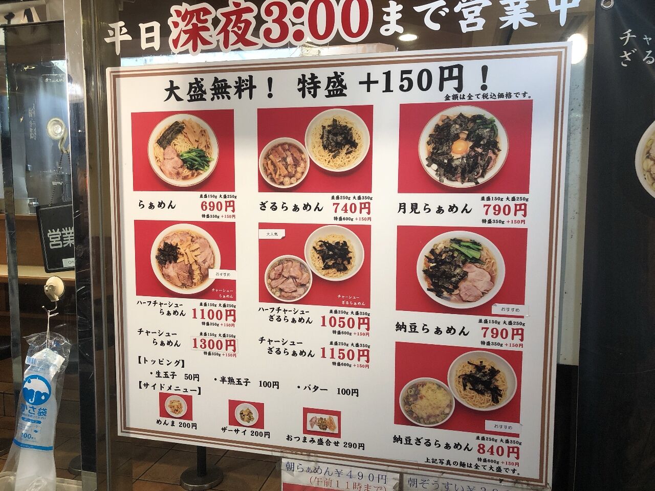 営業時間:平日7:00~翌3:00(金曜日は翌4:30まで)