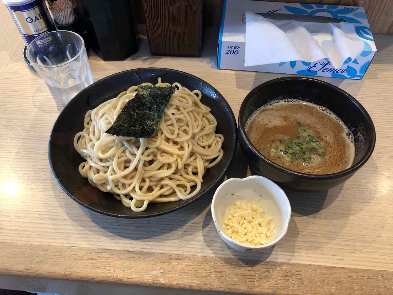 今回は「ざるらぁめん」(740円)に「半熟玉子」(100円)で賞味。